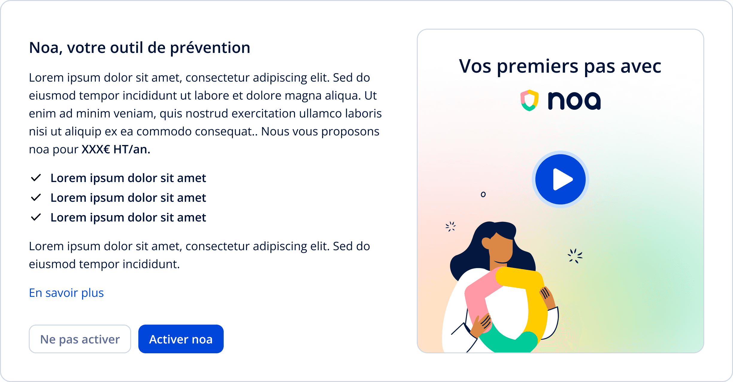 Noa is billed annually, but most users are familiar with monthly pricing for SaaS products. The new card displayed the monthly equivalent, with an explicit "billed annually" note to keep things honest.